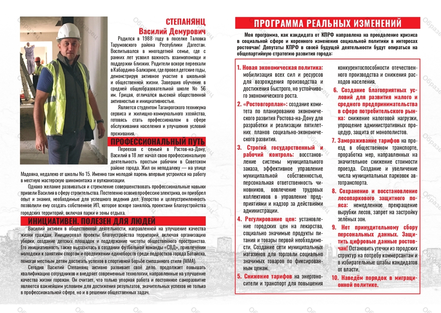 | Наименование агитационного материала | буклет формата А4 "Народный депутат" |