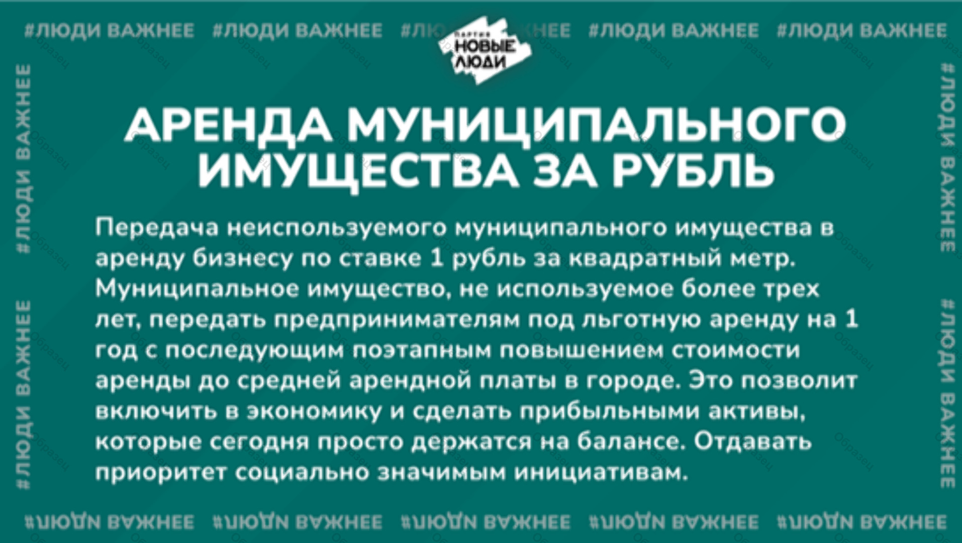| Наименование агитационного материала | "НОВЫЕ ЛЮДИ" предлагают ввести аренду муниципального имущества за 1 рубль |