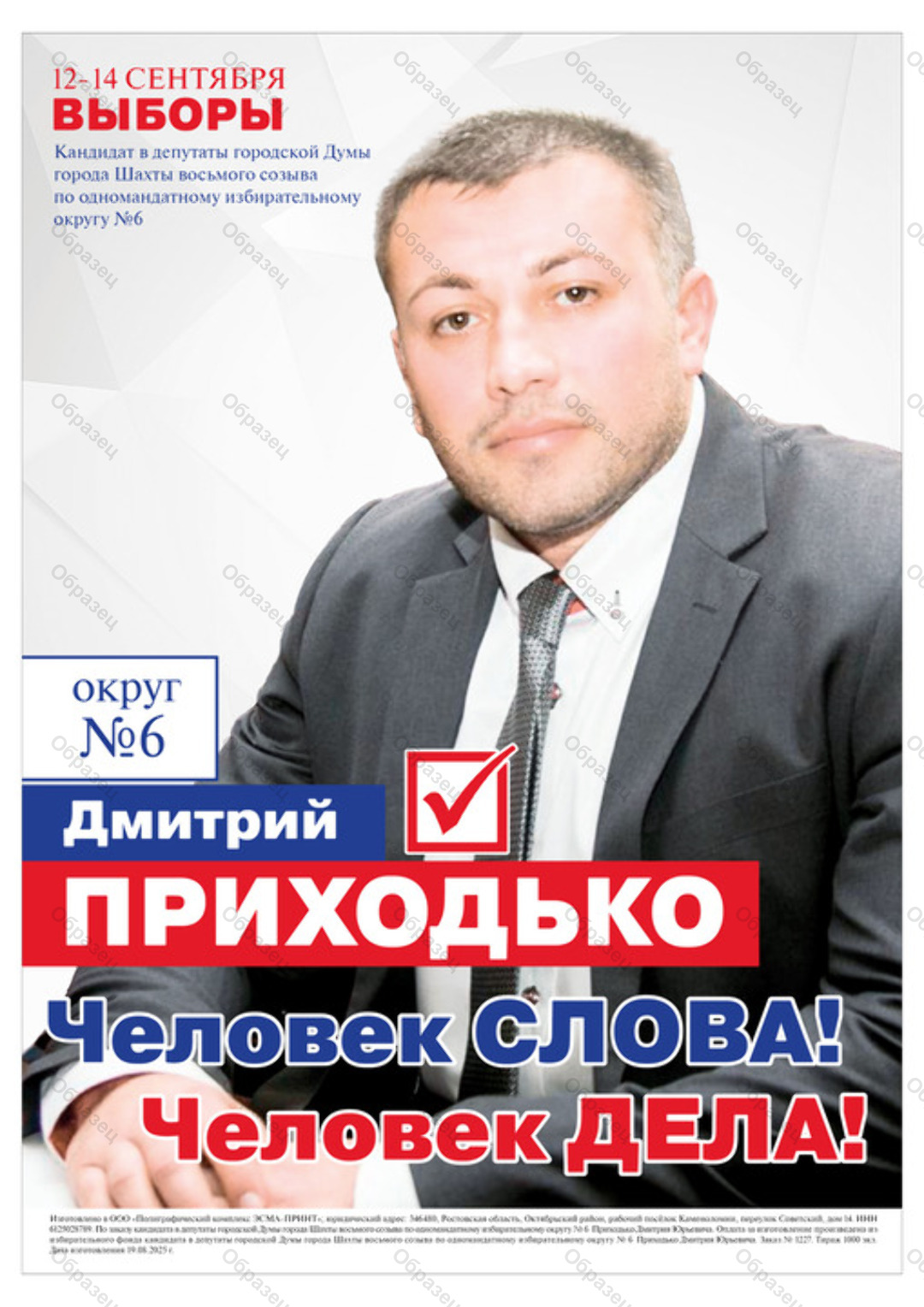 | Наименование агитационного материала | плакат А4 "Человек слова! Человек дела!" |