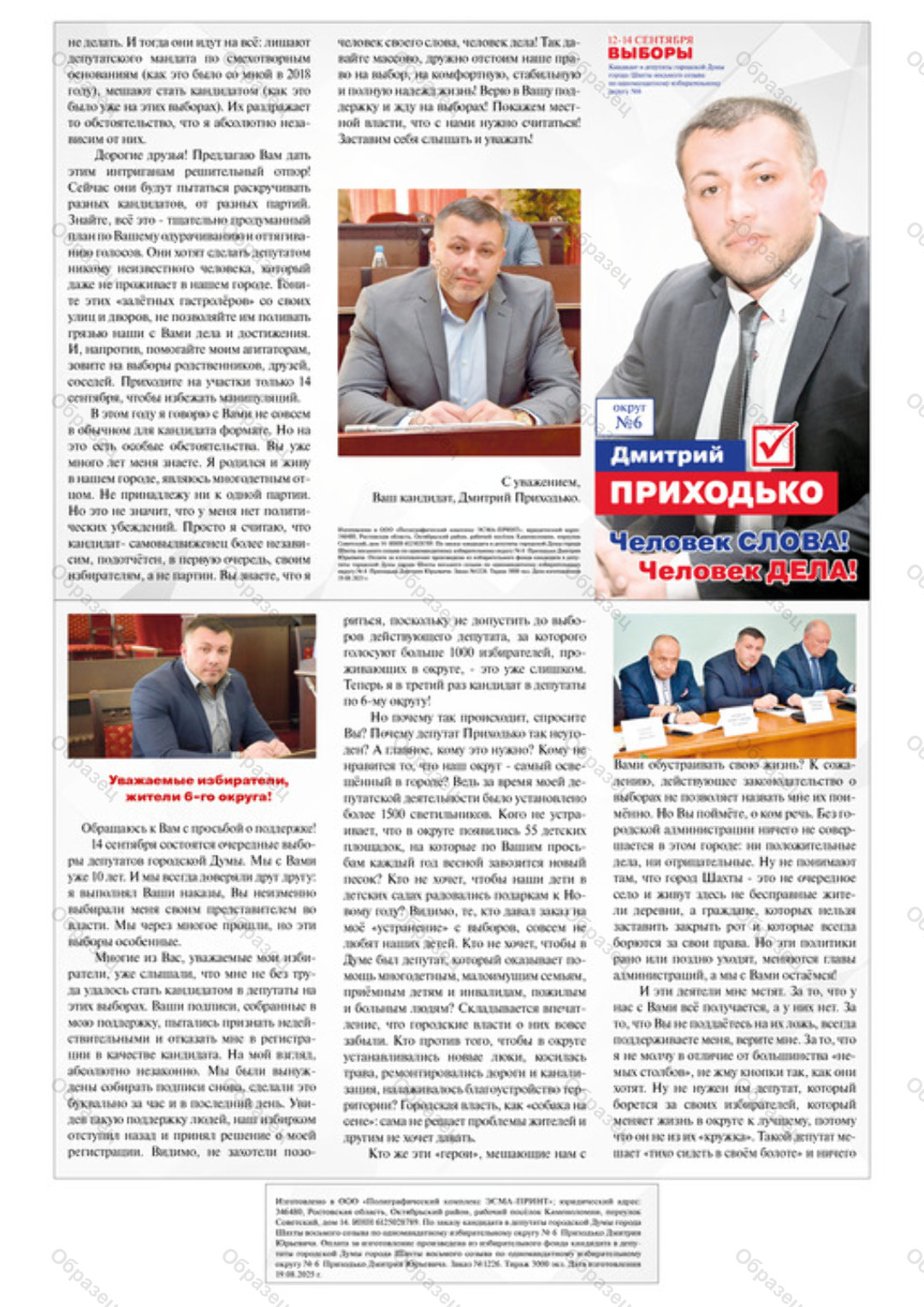 | Наименование агитационного материала | буклет А4 "Человек слова! Человек дела!" |