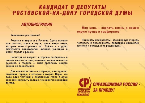 | Субъект выдвижения (кем выдвинут) | Региональное отделение Социалистической политической партии "СПРАВЕДЛИВАЯ РОССИЯ - ПАТРИОТЫ - ЗА ПРАВДУ" в Ростовской области |