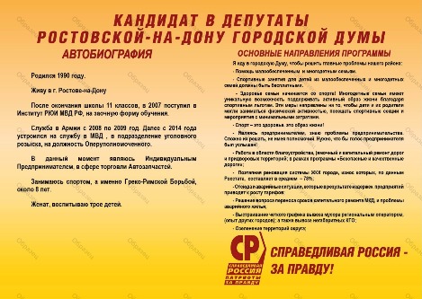 | Субъект выдвижения (кем выдвинут) | Региональное отделение Социалистической политической партии "СПРАВЕДЛИВАЯ РОССИЯ - ПАТРИОТЫ - ЗА ПРАВДУ" в Ростовской области |