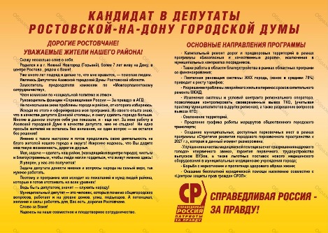 | Субъект выдвижения (кем выдвинут) | Региональное отделение Социалистической политической партии "СПРАВЕДЛИВАЯ РОССИЯ - ПАТРИОТЫ - ЗА ПРАВДУ" в Ростовской области |