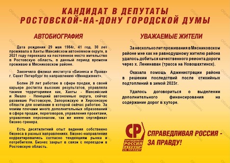 | Субъект выдвижения (кем выдвинут) | Региональное отделение Социалистической политической партии "СПРАВЕДЛИВАЯ РОССИЯ - ПАТРИОТЫ - ЗА ПРАВДУ" в Ростовской области |