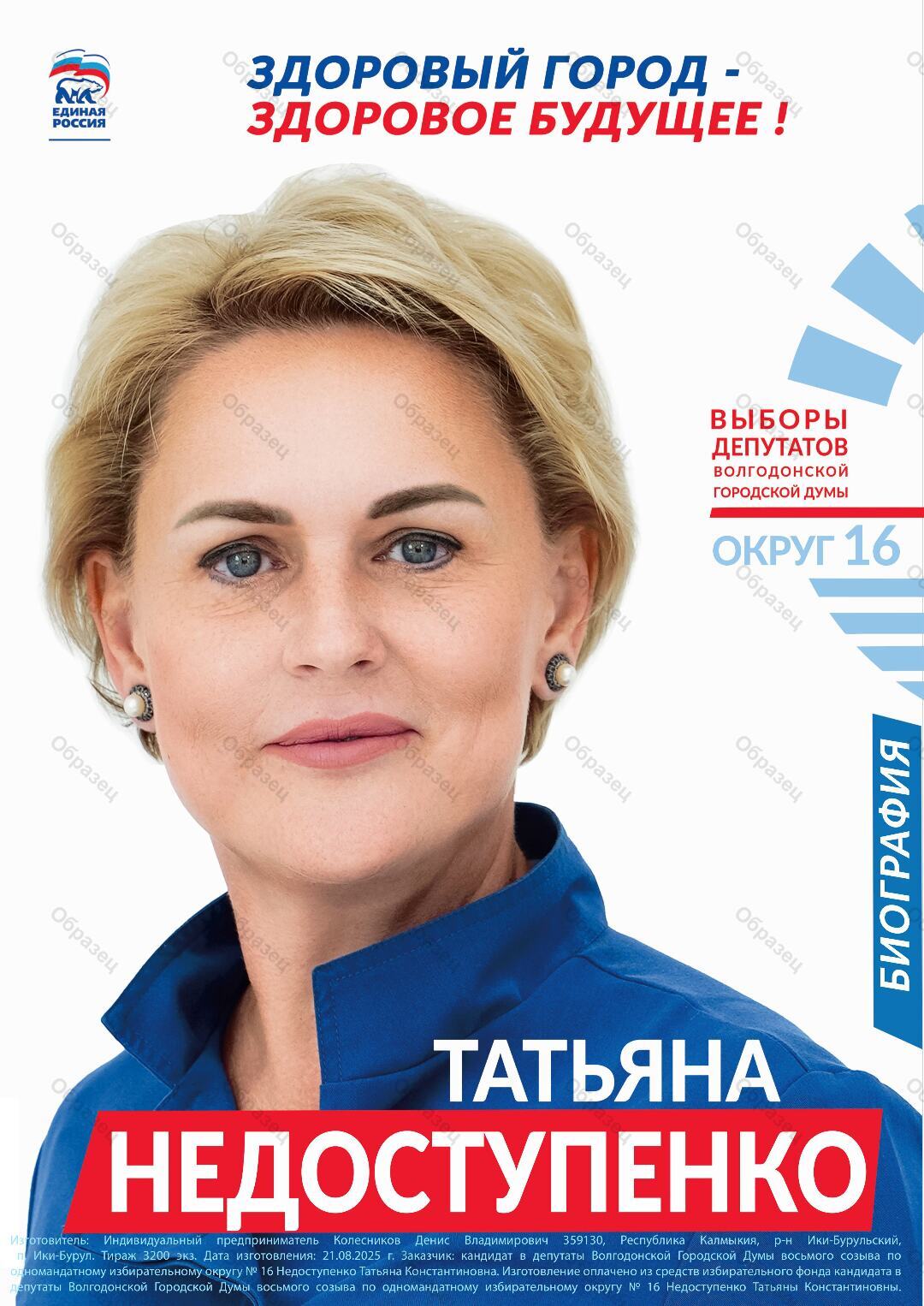 | Наименование агитационного материала | Буклет биография кандидата Недоступенко, А3 |