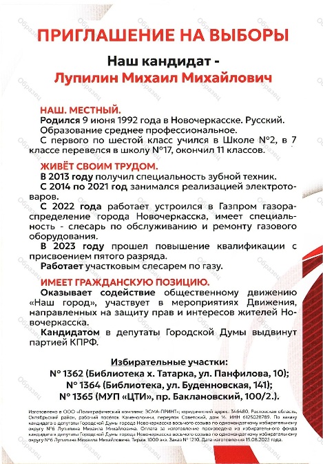 | Субъект выдвижения (кем выдвинут) | "КОММУНИСТИЧЕСКАЯ ПАРТИЯ РОССИЙСКОЙ ФЕДЕРАЦИИ" |