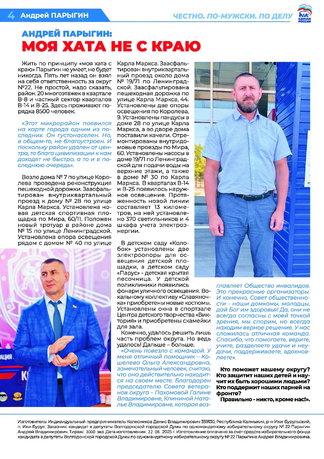 | Наименование агитационного материала | "Честно по-мужски по делу!" |