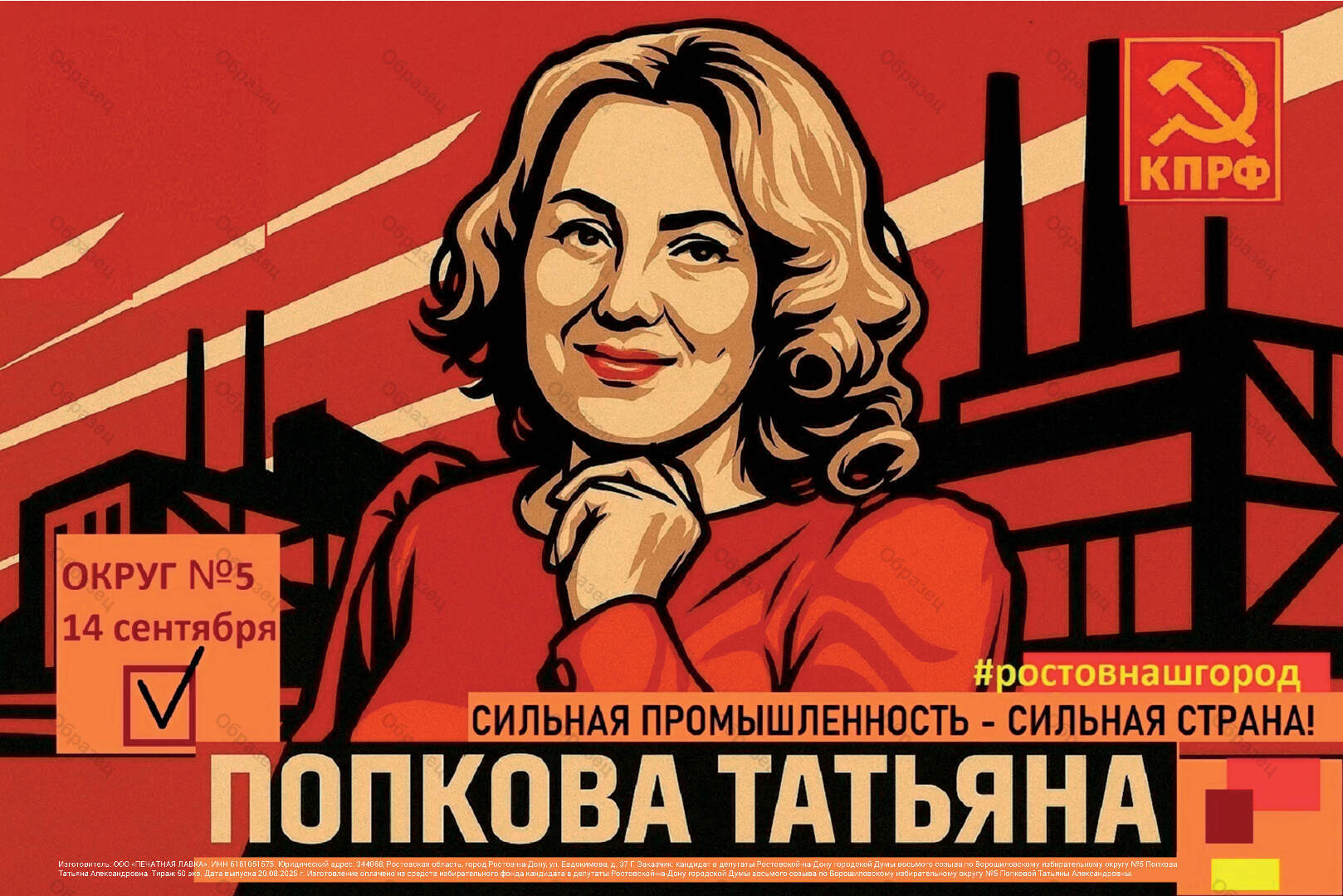 Изготовление оплачено из средств избирательного фонда кандидата в депутаты Ростовской-на-Дону городской Думы восьмого созыва по Ворошиловскому избирательному кругу № 5 Попковой Татьяны Александровны