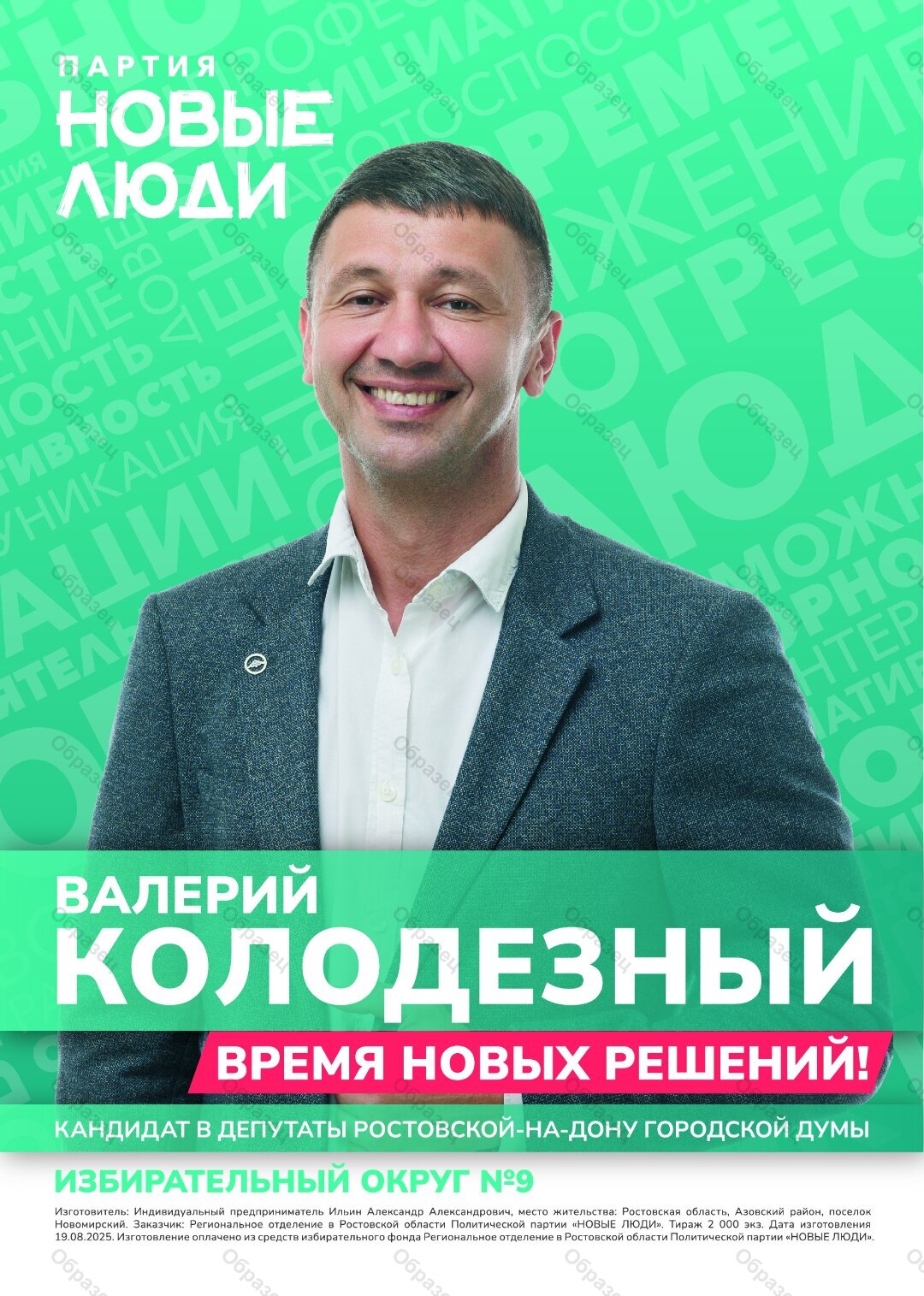 Наименование агитационного материала | Валерий Колодезный - кандидат от партии "Новые люди" |