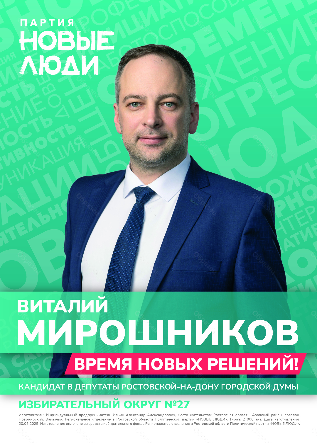 Наименование агитационного материала | Виталий Мирошников - кандидат от партии "Новые люди" |