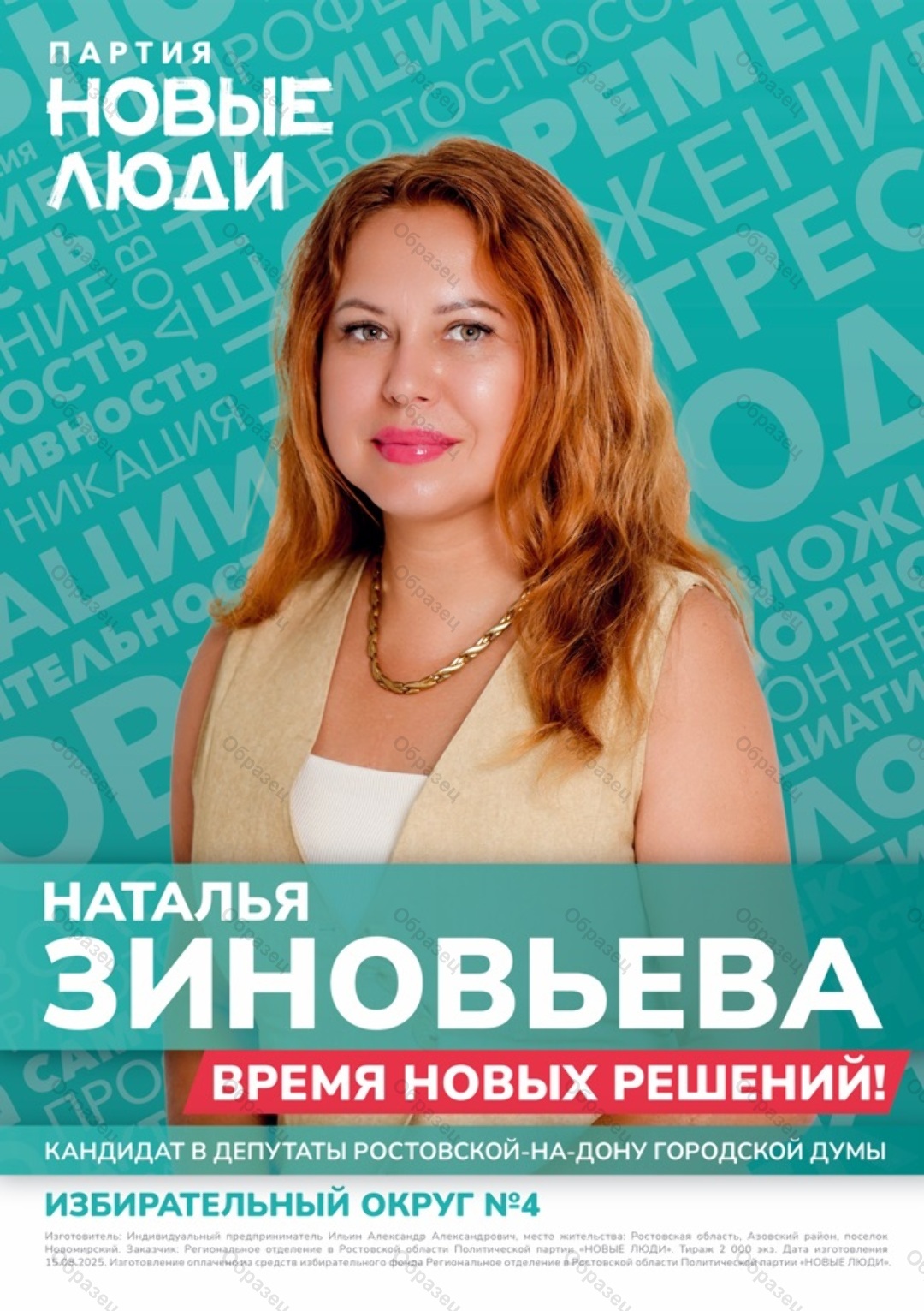 Наименование агитационного материала | Наталья Зиновьева - кандидат от партии "Новые люди" |