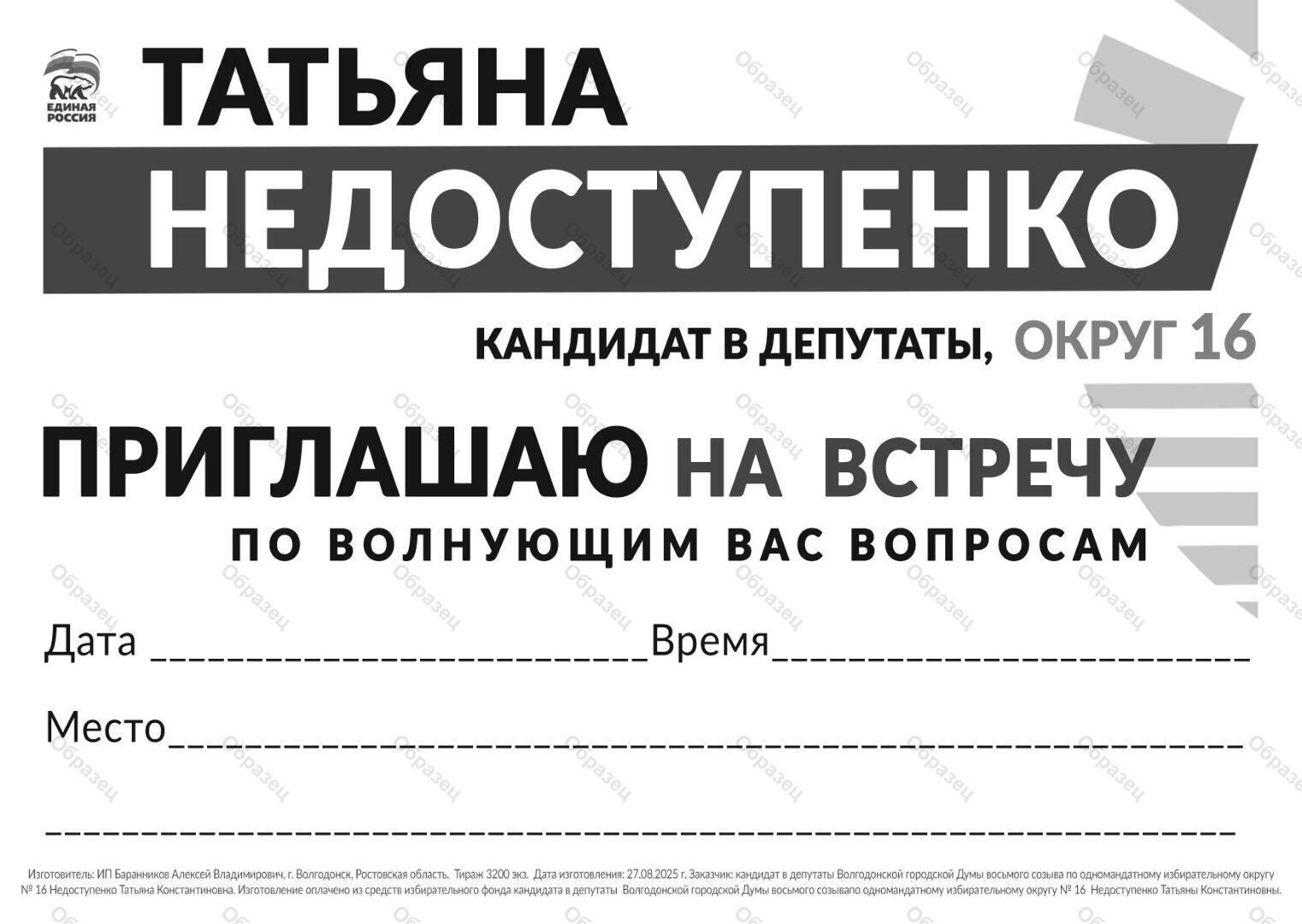 Наименование агитационного материала | "Татьяна Недоступенко" |