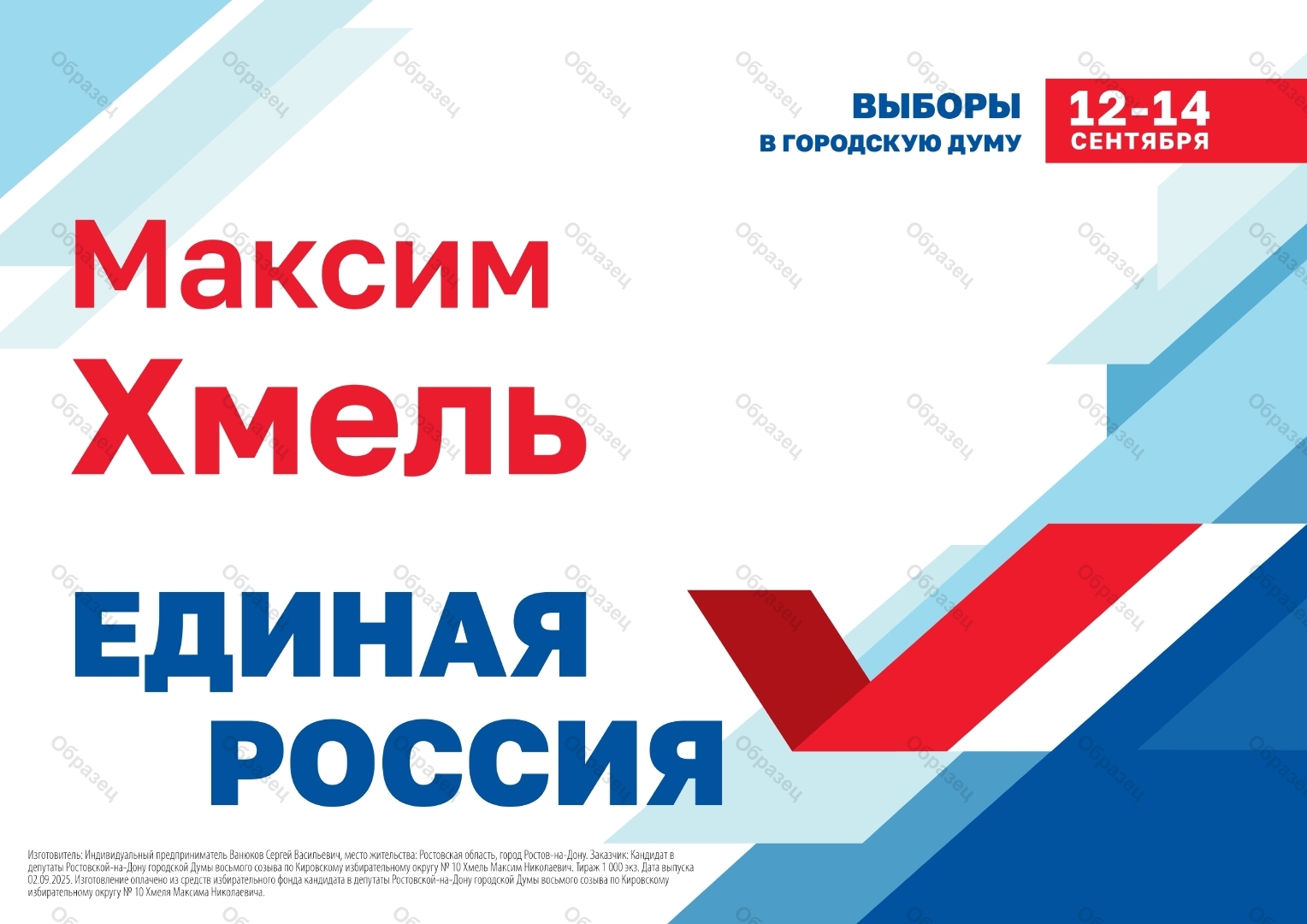 Оплачено из средств избирательного фонда кандидата в депутаты Ростовской-на-Дону городской Думы восьмого созыва по Кировскому одномандатному округу №10 Хмеля Максима Николаевича