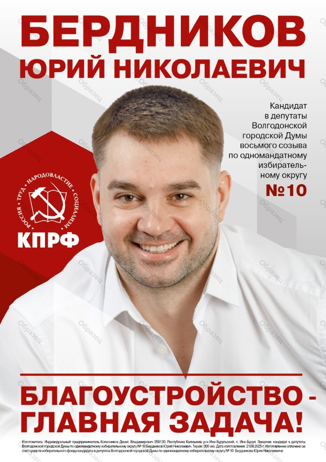 Наименование агитационного материала | Бердников Юрий Николаевич |