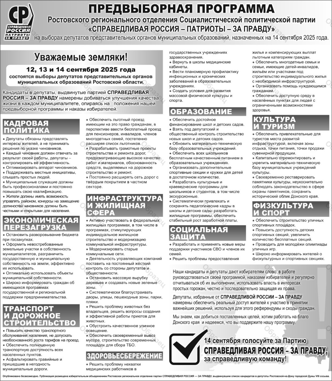 Заказчик | Региональное отделение Социалистической политической партии "СПРАВЕДЛИВАЯ РОССИЯ - ПАТРИОТЫ - ЗА ПРАВДУ" в Ростовской области |