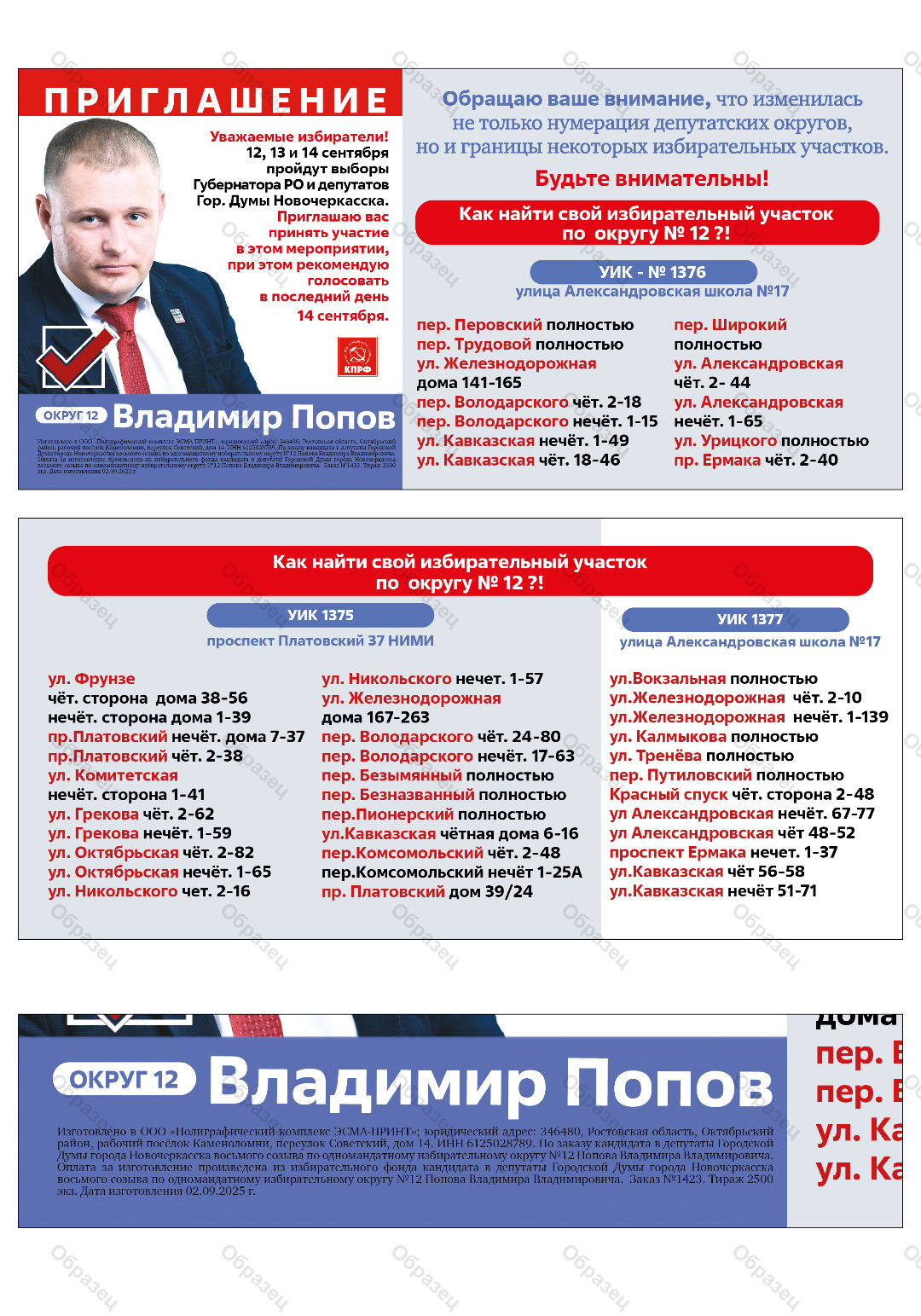 Наименование агитационного материала | ПРИГЛАШЕНИЕ |