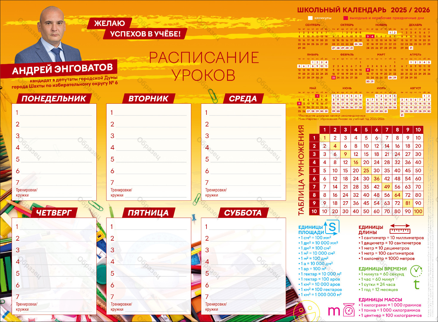 Наименование агитационного материала | плакат агитационный "Расписание уроков" |