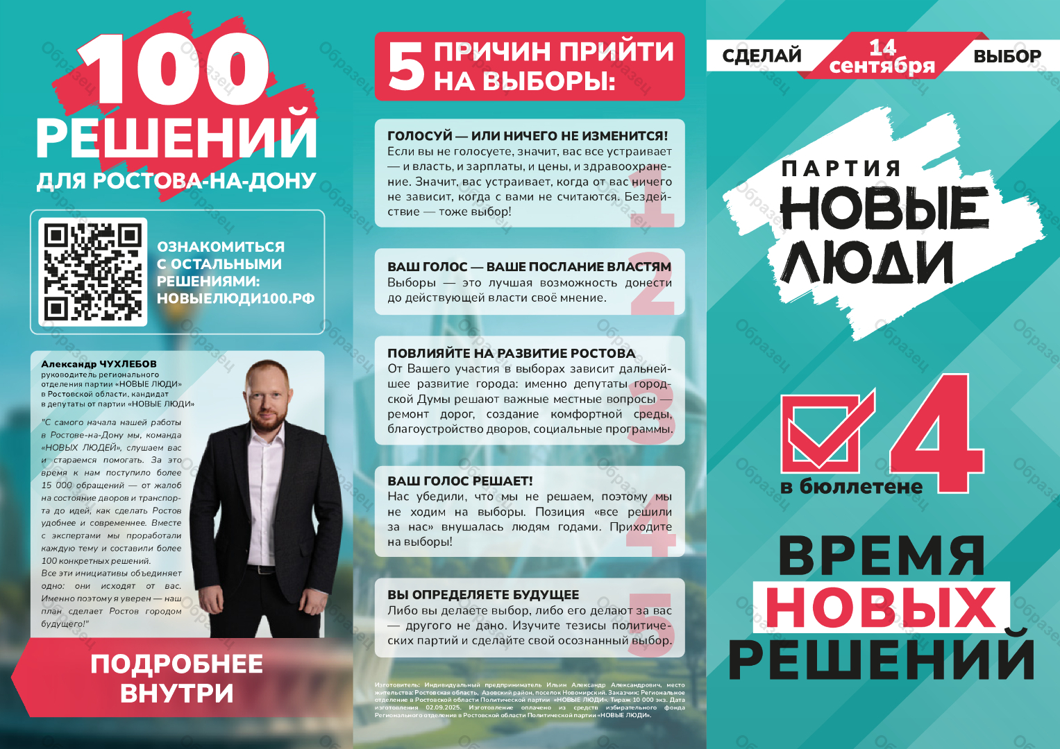 Оплачено из средств избирательного фонда Регионального отделения в Ростовской области Политической партии «НОВЫЕ ЛЮДИ»