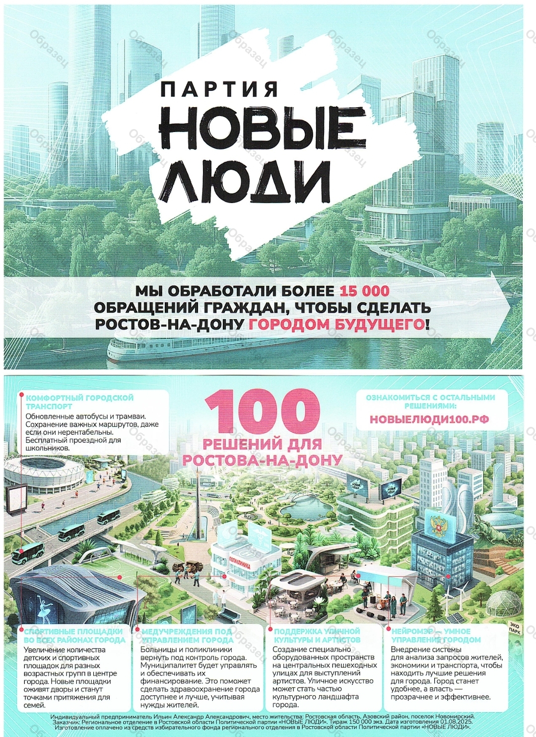 Оплачено из средств избирательного фонда Регионального отделения в Ростовской области Политической партии «НОВЫЕ ЛЮДИ»