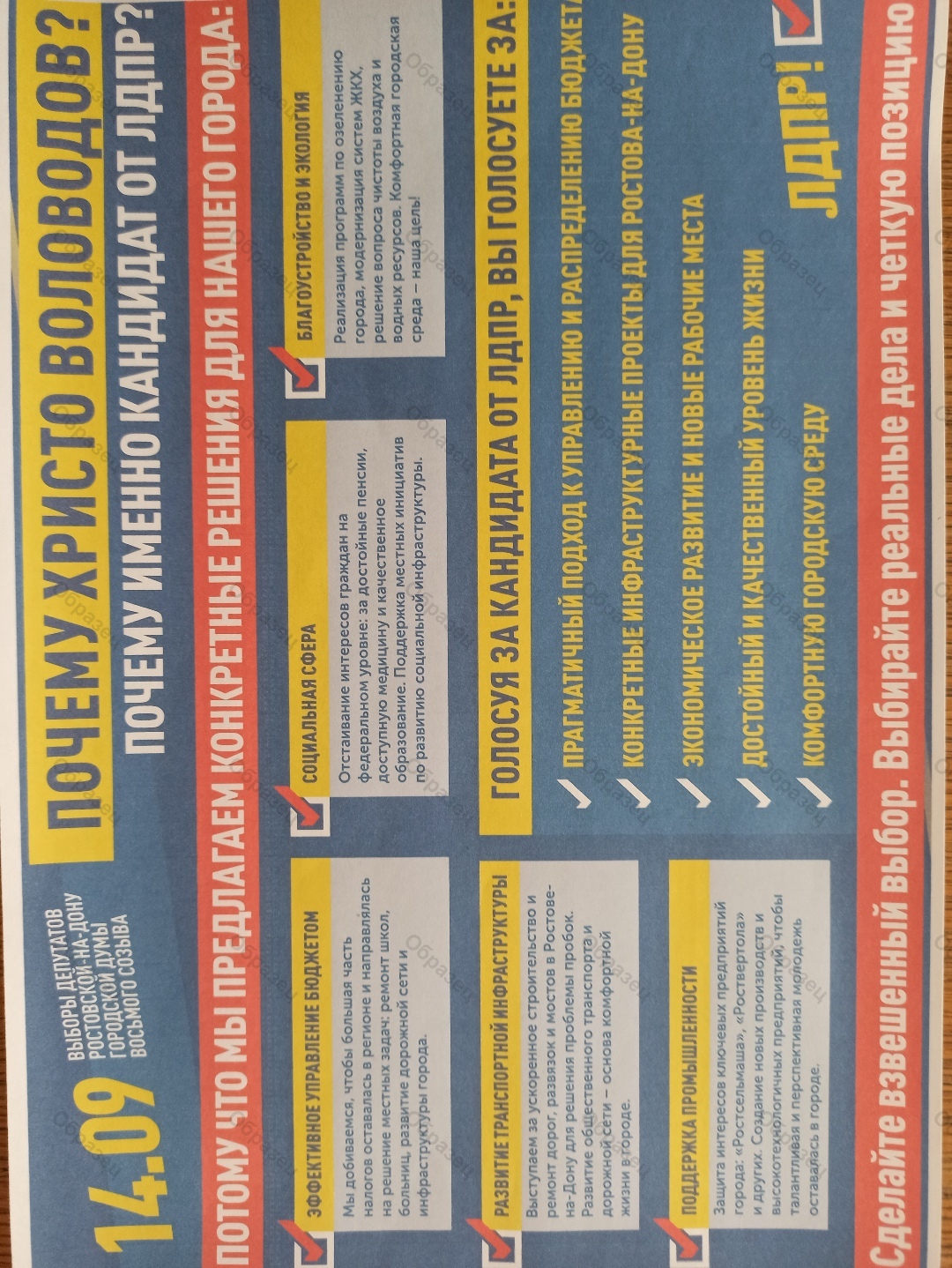 Заказчик | кандидат в депутаты Ростовской-на-Дону городской Думы восьмого созыва по Октябрьскому избирательному округу № 14 Воловодов Христо Янисович |