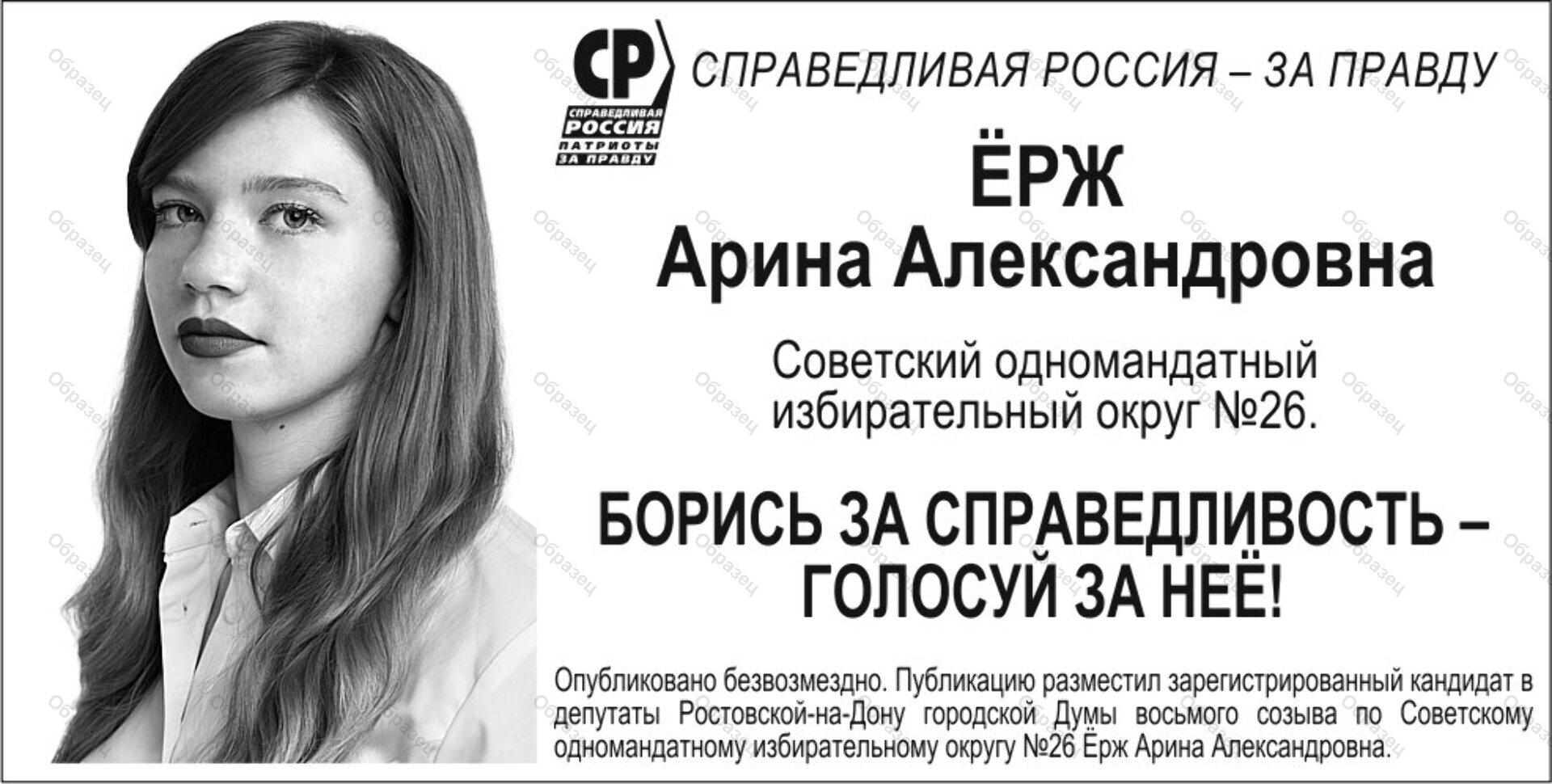 | Наименование агитационного материала | Борись за справедливость - голосуй за неё! |