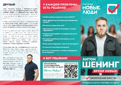 | Наименование агитационного материала | НОВЫЕ ЛЮДИ ШЕНИНГ |