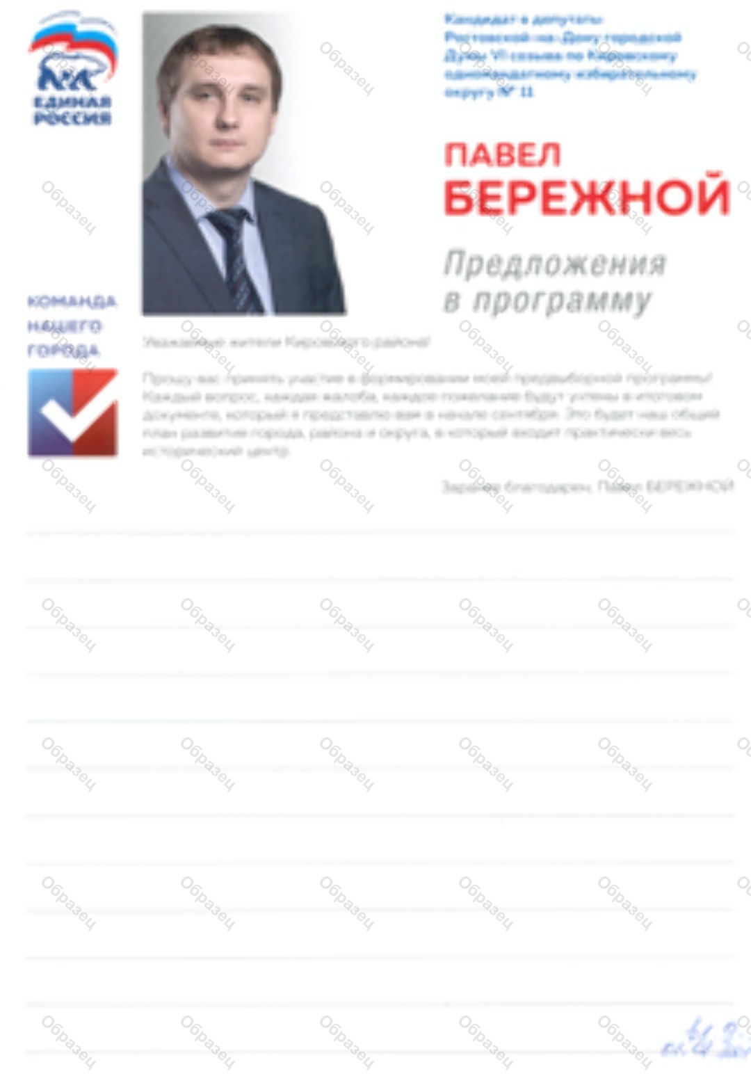Оплачено из средств избирательного фонда кандидата в депутаты Ростовской-на-Дону городской Думы шестого созыва
